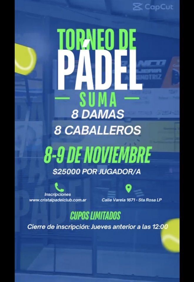 »» Evento: SUMA 8 DAMAS Y SUMA 8 CABALLEROS »» Localidad: Santa Rosa »» Fechas: 07/11/2025 al 09/11/2025